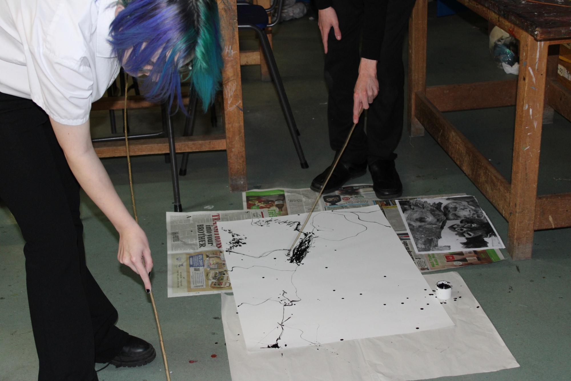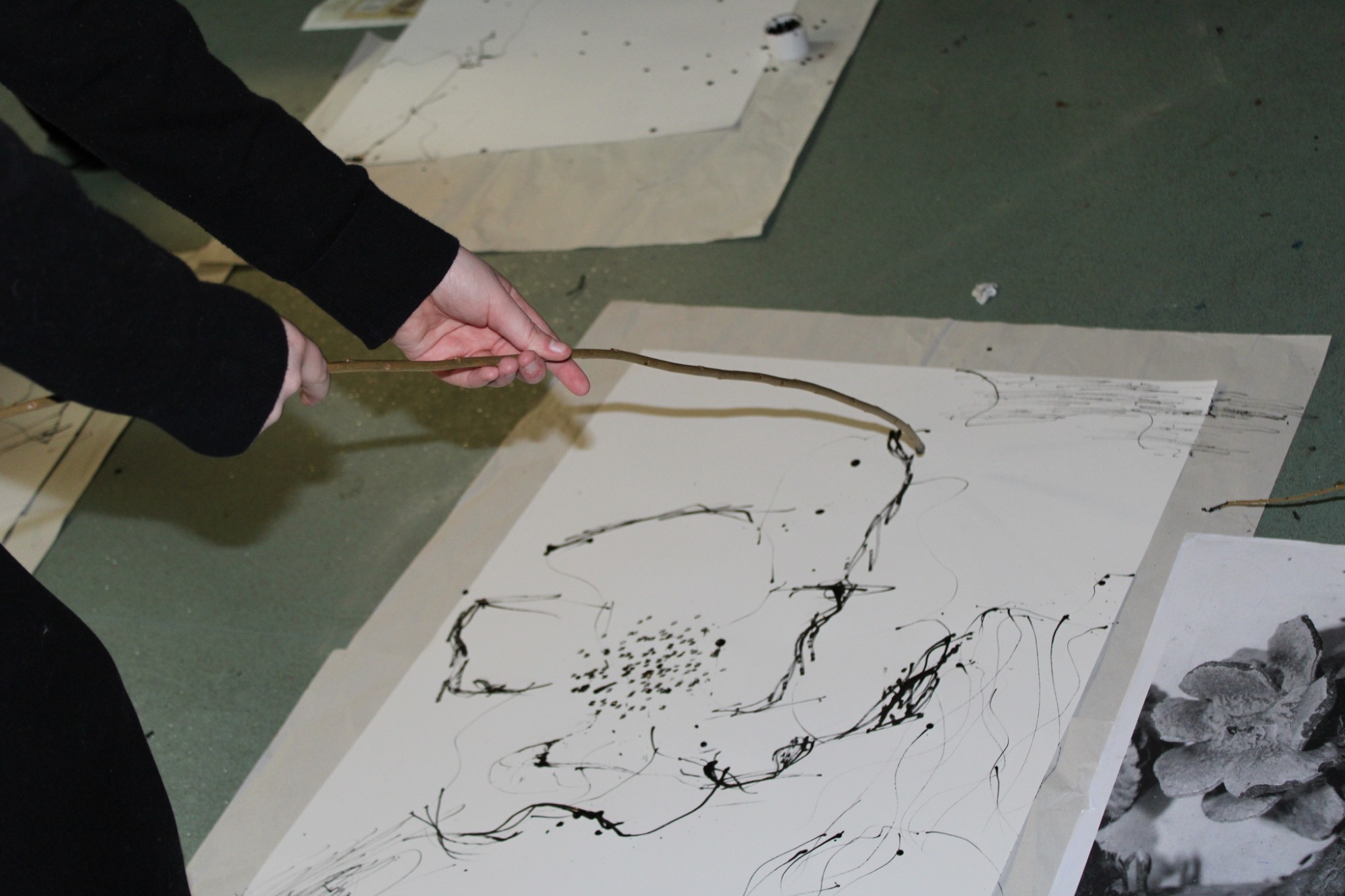 Some lovely expressive mark making from 6th form, using ink and willow branches. Getting them out of their comfort zone!