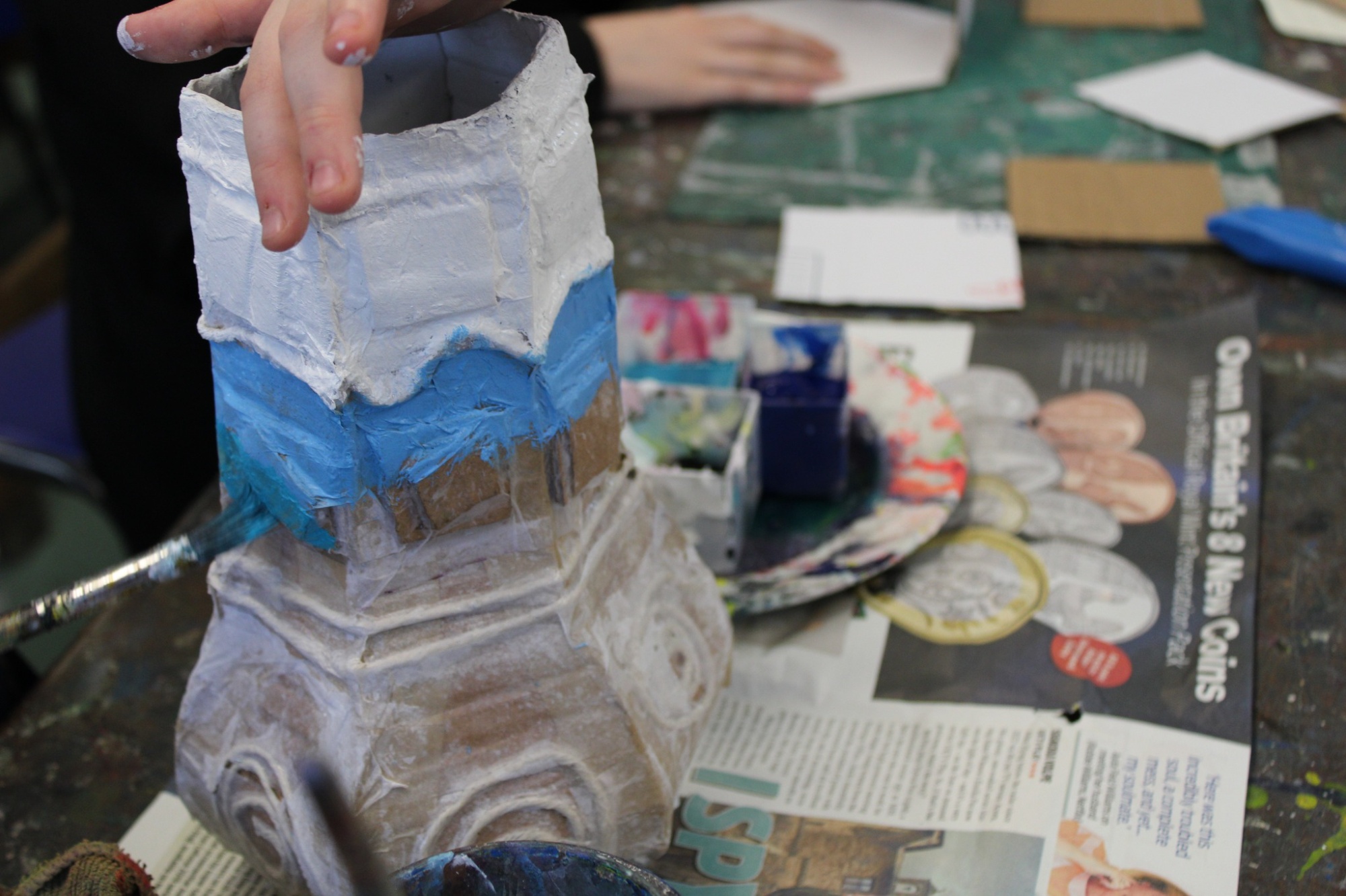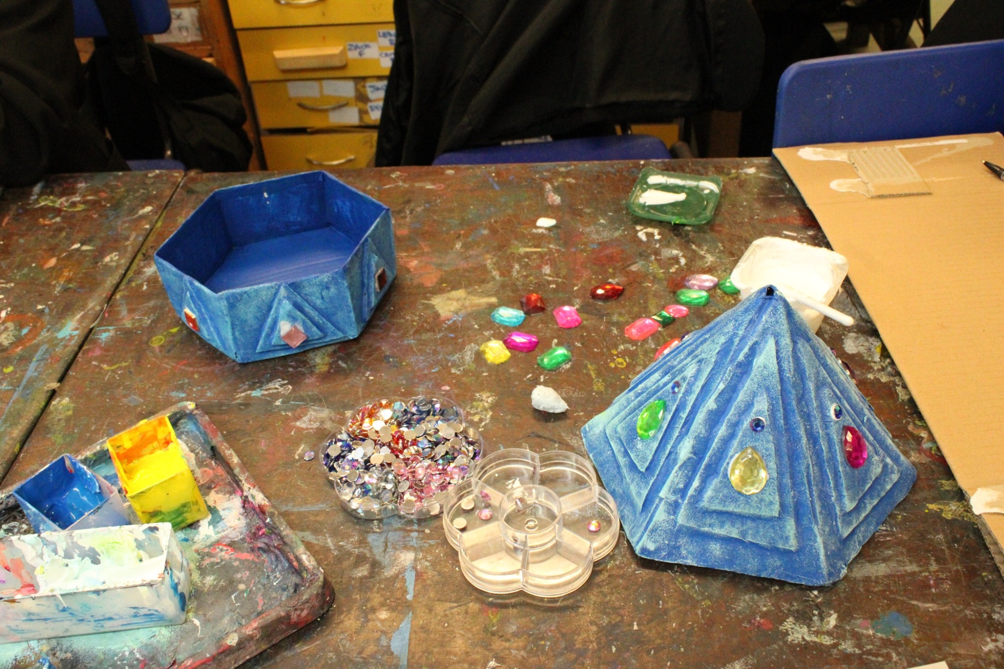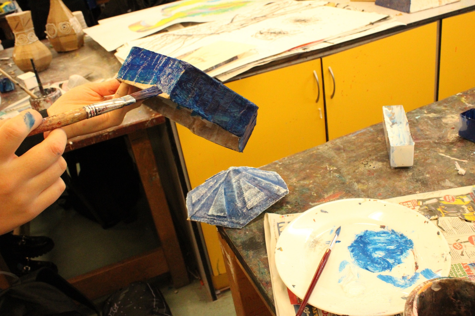 Year 8 are hard at work with their 3D work, pots and vases based on Islamic and Greek designs.