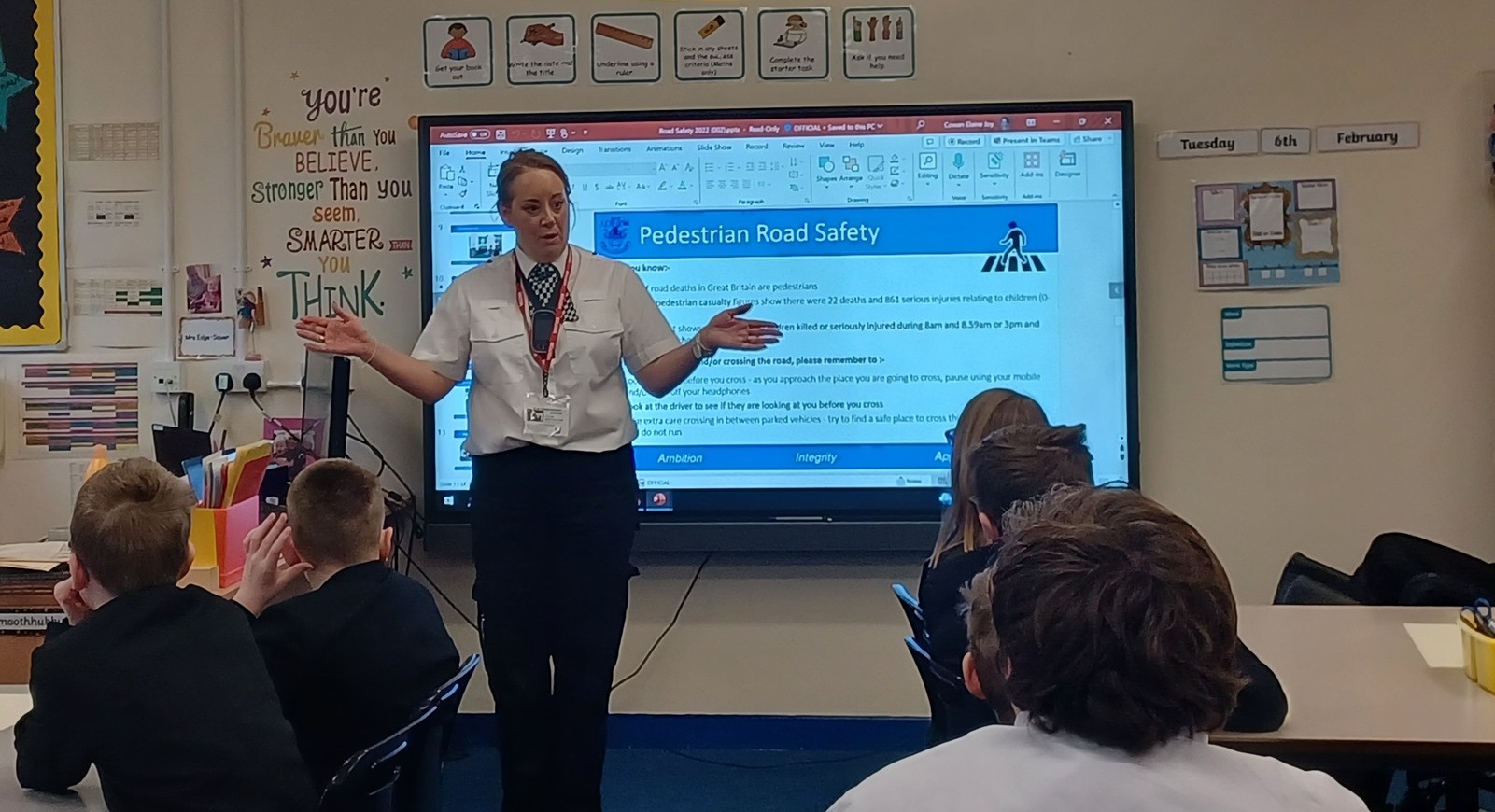 Today PC Cowan delivered a great talk to our F1 students, all about road safety and different ways of keeping ourselves safe near roads!